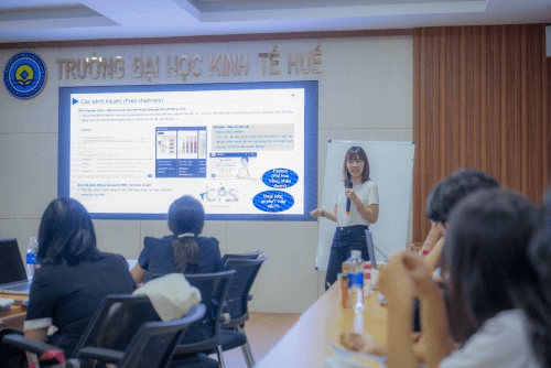 Chiều cùng ngày, quý anh/chị diễn giả đã tổ chức một buổi nói chuyện chuyên sâu về "Chiến lược kinh doanh Thương mại điện tử" dành cho 30 giảng viên và sinh viên cao học. Buổi nói chuyện đã mang lại nhiều kiến thức bổ ích về những thay đổi trong lĩnh vực Thương mại điện tử, quản trị và chiến lược áp dụng trong Thương mại điện tử, quản lý các chiến dịch trong Thương mại điện tử và cách thu hút người dùng đến các sàn Thương mại điện tử. Với các tình huống thực tế và kiến thức cập nhật, hy vọng rằng giảng viên và sinh viên cao học đã được nâng cao năng lực trong việc giảng dạy và học tập, từ đó tạo ra một môi trường học tập năng động và sáng tạo.